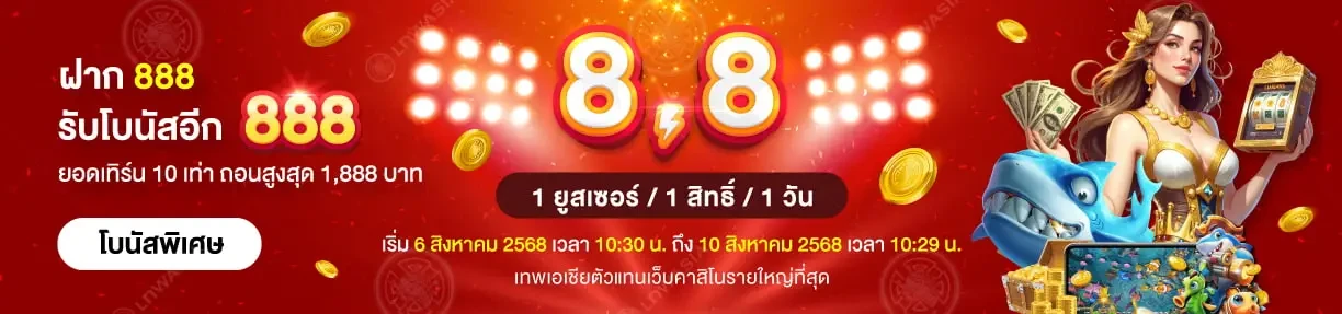 8.8 สุดคุ้ม! ฝาก 888 รับโบนัสอีก 888!