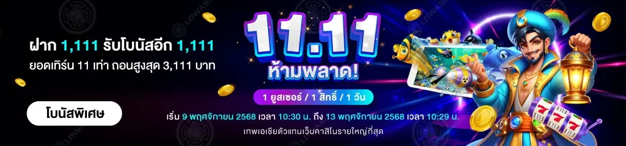 11.11 ห้ามพลาด! ฝาก 1,111.- รับโบนัส 1,111.-